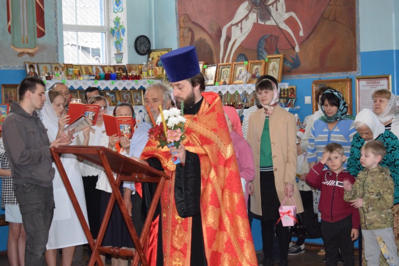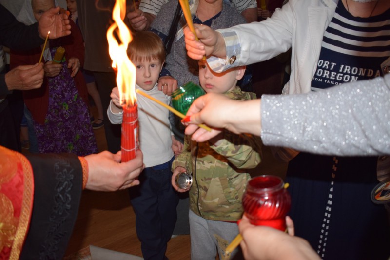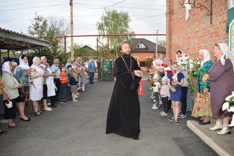 Благодатный огонь, доставленный из Иерусалима, епископ Шахтинский и Миллеровский Симон раздавал духовенству и верующим по окончании пасхальной великой вечерни в Покровском кафедральном соборе г.Шахты.