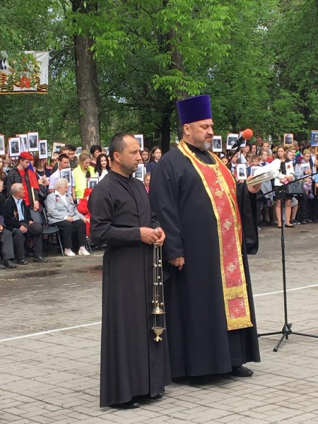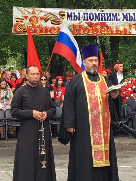 Настоятель храма святителя Тихона Задонского станицы Кривянской протоирей Анатолий Почтовый, принял участие в праздничных мероприятиях посвященных Дню Победы.