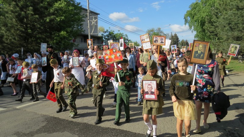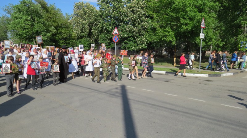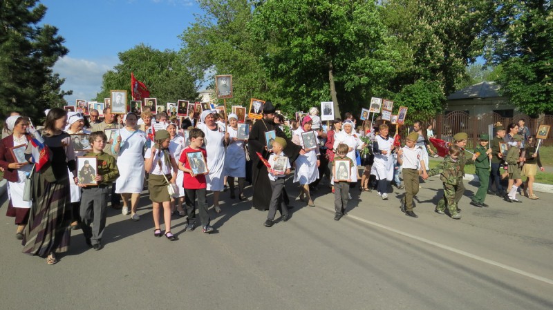 В шествии Бессмертного полка принял участие благочинный приходов Нижнедонского округа протоиерей Сергий Яценко, воспитанники церковно-приходской школы «Благовест» храма Архангела Михаила п. Каменоломни, сестры Марфо-Мариинского Сестричества и молодые семьи православного клуба «Верность» п. Каменоломни.