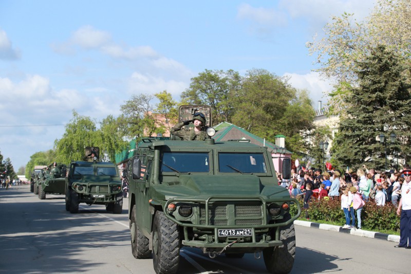 Далее, состоялось прохождение боевой техники. Возглавил колонну - российский многоцелевой автомобиль повышенной проходимости газ - 2320 «Тигр».
