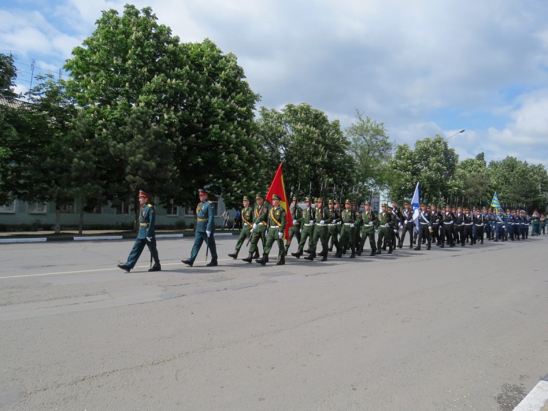 Торжественное прохождение войск Кадамовского гарнизона открывала Знаменная группа с Государственным флагом Российской Федерации и Знаменем Победы - штурмовым флагом 150-й ордена Кутузова II степени Идрицкой стрелковой дивизии, водружённым 1 мая 1945 года военнослужащими Красной Армии Алексеем Берестом, Михаилом Егоровым и Мелитоном Кантария на крыше здания рейхстага в городе Берлине.