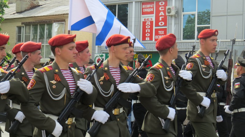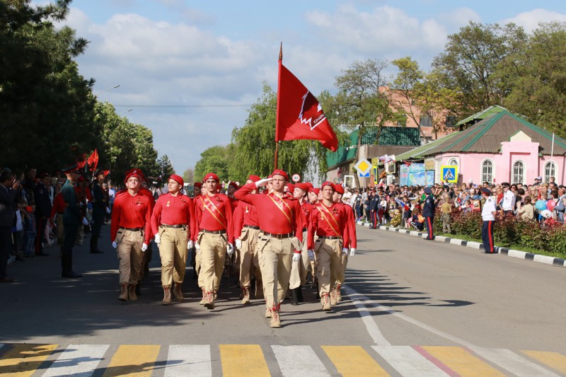 Замыкал торжественное прохождение отряд юнармии спортивно-патриотического клуба «Казачья застава».