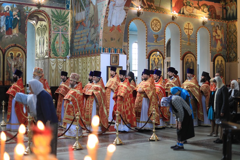 За Божественной литургией вместе с архиереем радость праздничного богослужения разделило многочисленное духовенство епархии.