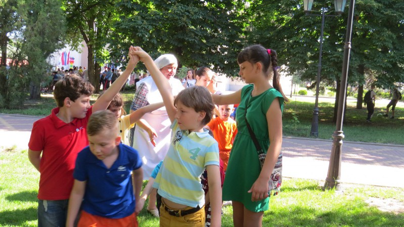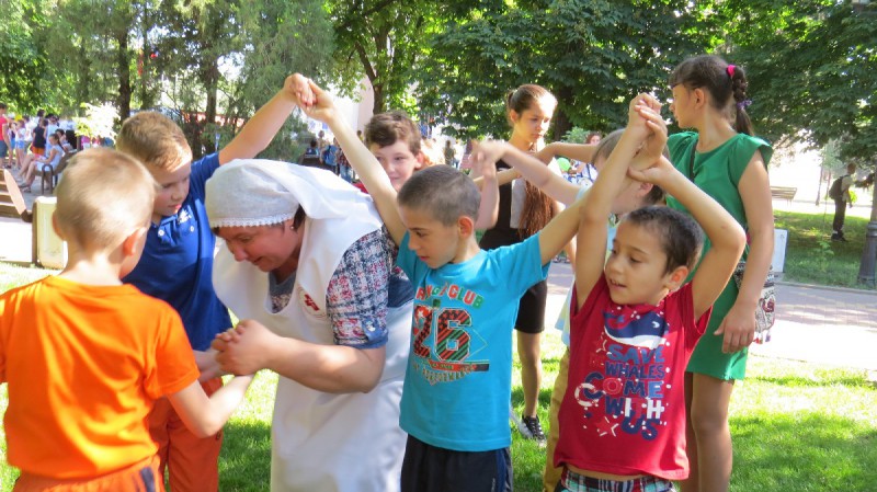 В рамках реализации проекта «Вера. Надежда. Любовь» Всероссийского конкурса лучших волонтерских инициатив «Доброволец России - 2019», сестры Марфо-Мариинского Сестричества храма Архистратига Михаила п. Каменоломни Нижнедонского благочиния с детьми социального приюта для детей и подростков Октябрьского района «Огонек» в День защиты детей организовали и провели игровую программу «Праздник Детства».