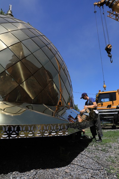 Вскорости с помощью спецтехники начался подъем освященного купола. Водружение святыни люди ожидали с замиранием сердца.