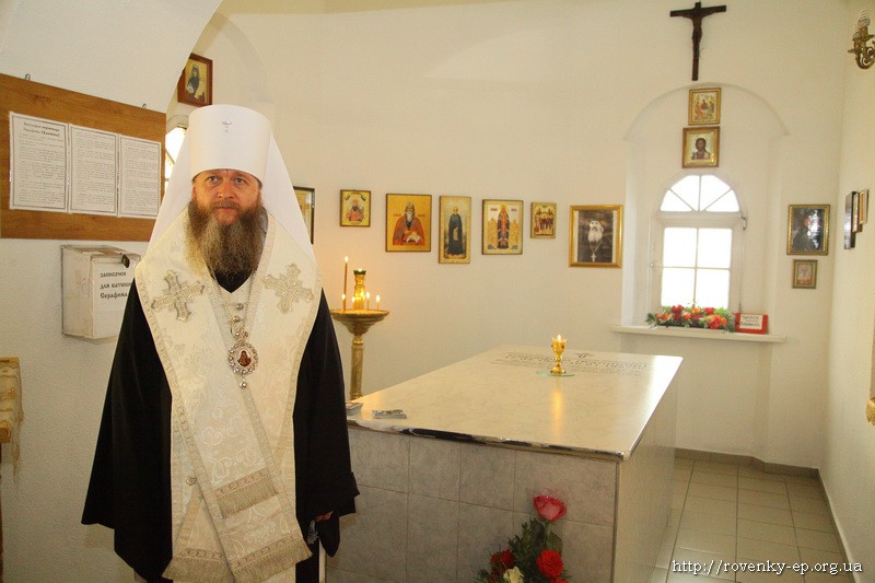 6 августа управляющий Ровеньковской епархией (Украинской Православной Церкви) митрополит Пантелеимон посетил г. Новошахтинск. В левом приделе центрального храма Донской иконы Богородицы расположено место погребения известного подвижника веры и благочестия иеромонаха Серафима (Калинина).