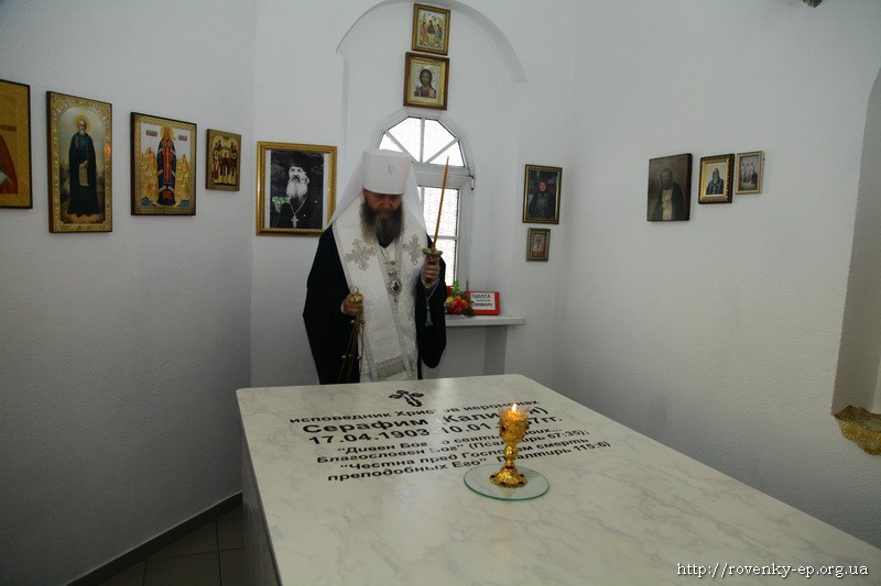 6 августа управляющий Ровеньковской епархией (Украинской Православной Церкви) митрополит Пантелеимон посетил г. Новошахтинск. В левом приделе центрального храма Донской иконы Богородицы расположено место погребения известного подвижника веры и благочестия иеромонаха Серафима (Калинина).