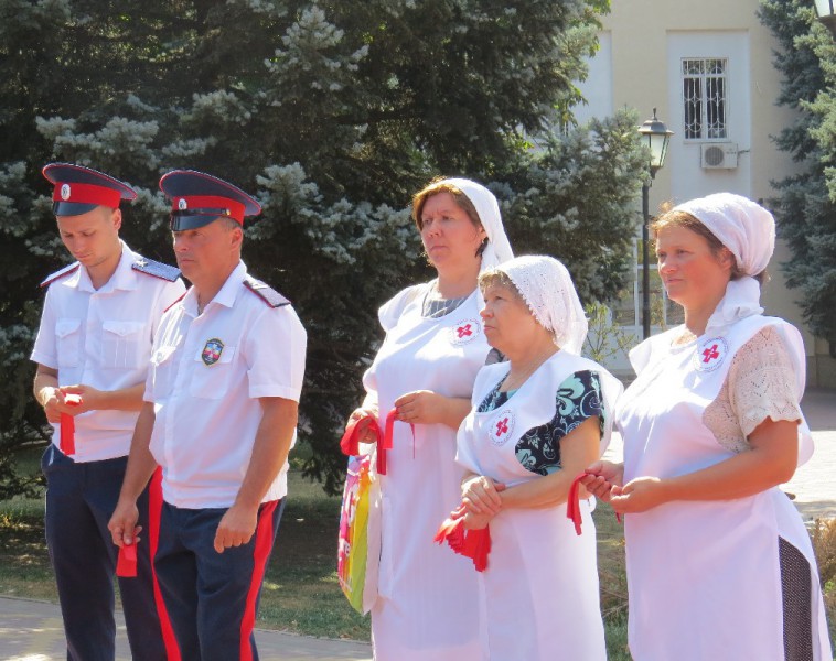 В завершении тематической встречи прошла патриотическая акция Александро-Невская ленточка «Будь достоин памяти Великих Предков». Акция проводится уже не первый год в рамках масштабного Всероссийского молодежного проекта «Александр Невский - Слава, Дух и Имя России». В Ростовской области Октябрьский район (Нижнедонского благочиния) стал пилотным в проведении данной акции. Александро-Невская ленточка является ярким символом, призывающим каждого человека стать продолжателем подвигов Героев нашего Отечества. В ленточке используется красный цвет, символизирующий жертвенное служение всем людям, и желтый, указывающий на необходимость развития в себе благородных устремлений, два края ленты, символизируют неразрывную связь прошлых и настоящих поколений.