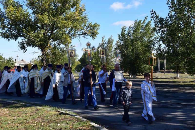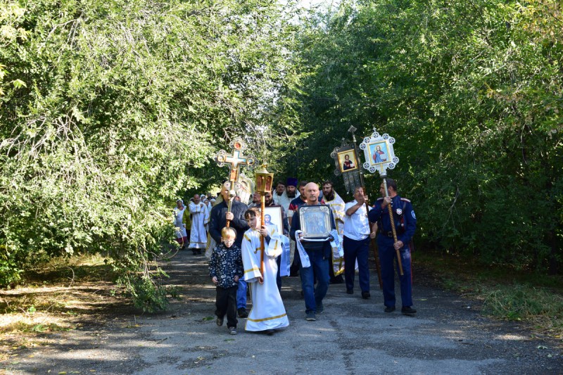 По сложившейся традиции после праздничного богослужения прошел Крестных ход к Часовне Архангела Михаила, находящейся при въезде в поселок Каменоломни. Возле Часовни, освященной в воспоминание Чуда Архистратига Михаила бывшее в Хонех, Предводителю Воинства Небесного был совершен молебен, после которого отец Сергий обратился к молящимся с поздравлением и пастырским слом, в котором рассказал о древнем прославлении Архистратига Михаила и его молитвенном заступничестве за православных христиан.