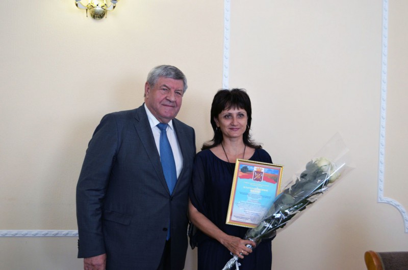 Глава Администрации Октябрьского района Л.В.Овчиева за плодотворную работу по обучению и воспитанию учащихся, значительный вклад в развитие муниципальной системы образования и в связи с профессиональным праздником вручила Благодарственные письма педагогическим работникам и ветеранам педагогического труда, имеющих звание "Заслуженный учитель РФ", а так же победителям муниципальных и региональных конкурсов.