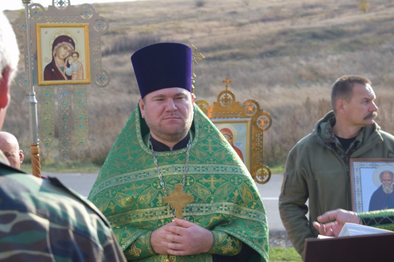 Благочинный приходов Нижнедонского округа протоиерей Сергий Яценко обратился к местным жителям с пастырским словом, поздравил их со знаменательным событием в жизни поселения и подарил всем благодетелям принимавшим участие в изготовлении и установке Поклонного Креста, икону преподобного Сергия Радонежского.