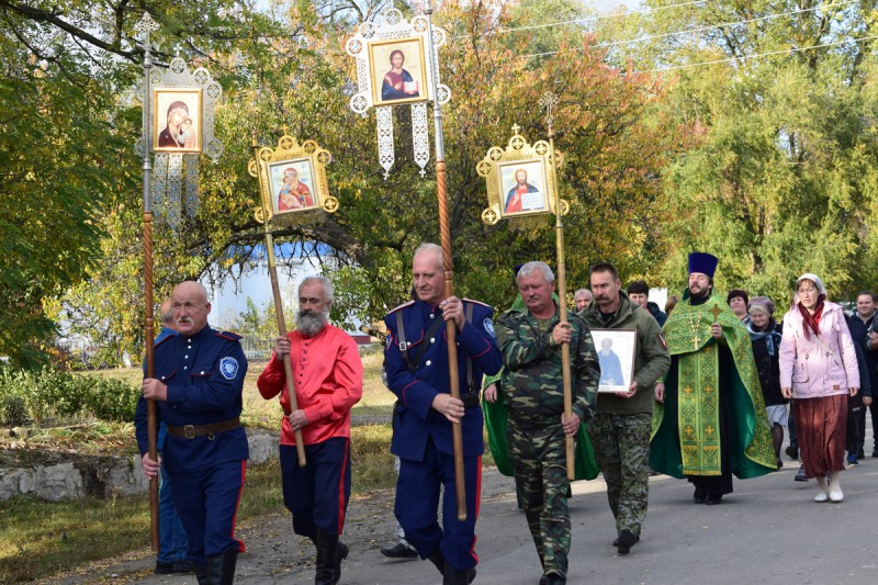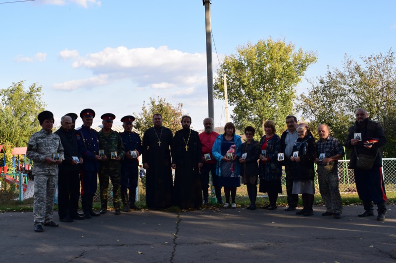 Благочинный приходов Нижнедонского округа протоиерей Сергий Яценко обратился к местным жителям с пастырским словом, поздравил их со знаменательным событием в жизни поселения и подарил всем благодетелям принимавшим участие в изготовлении и установке Поклонного Креста, икону преподобного Сергия Радонежского.