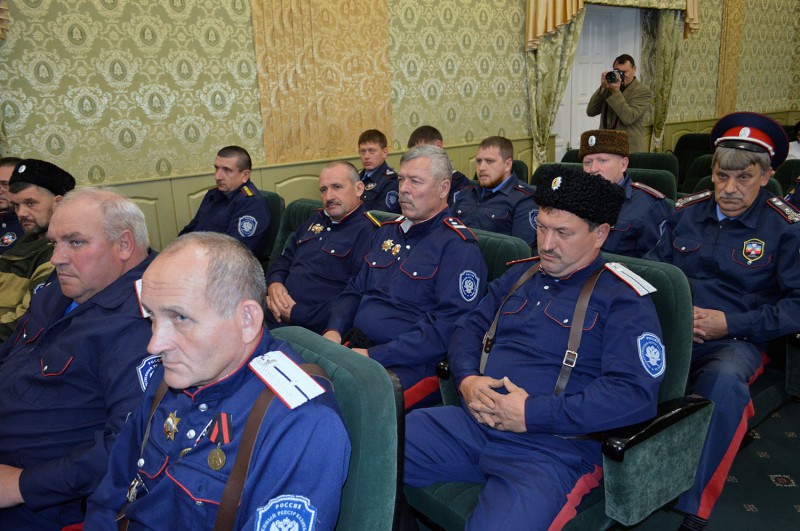 В торжественном мероприятии приняли участие глава Администрации Октябрьского района Л. В. Овчиева, казаки района.