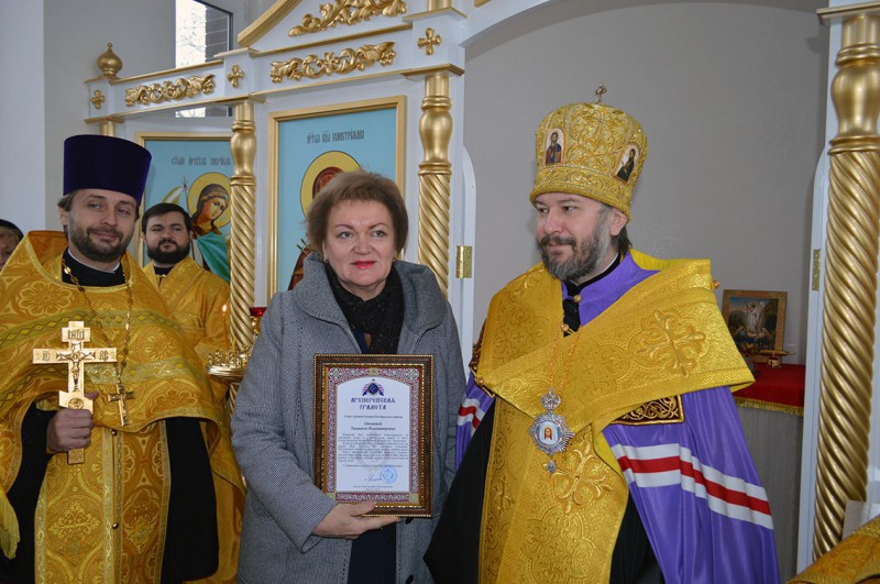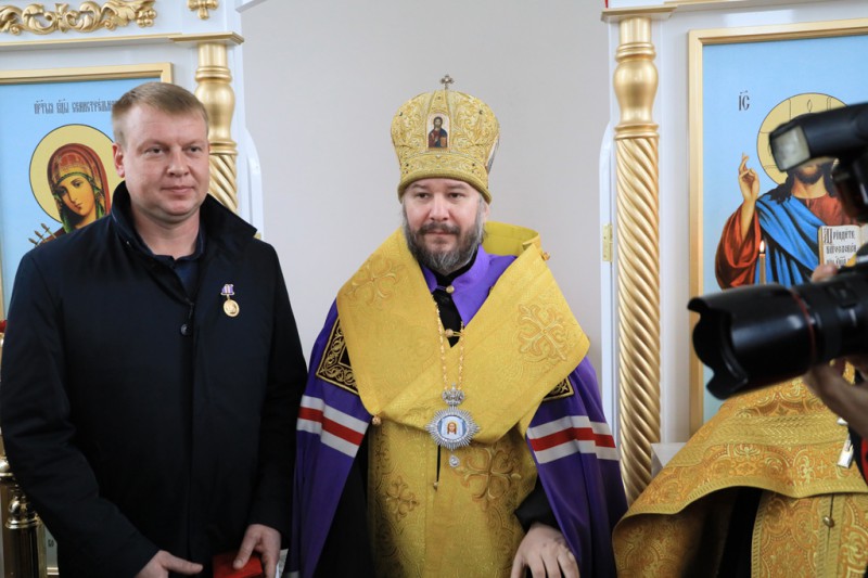 Епископ Симон выразил искреннюю благодарность за значимый вклад в строительство храма и вручил церковные награды тем, чьими стараниями строился храм.