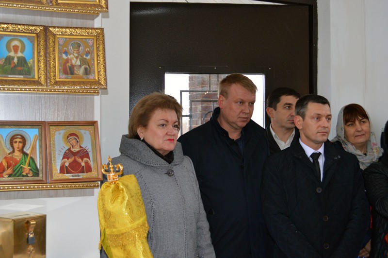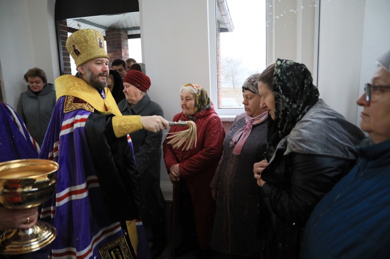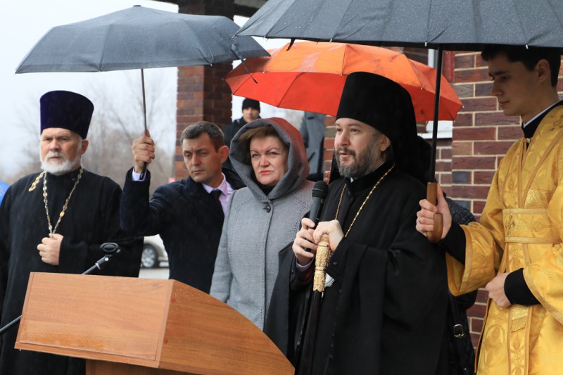 Совершив молитву, епископ Симон обратился к настоятелю, благотворителям храма и местным жителям с архипастырским словом, в котором искренне поздравил всех с появлением в поселке святыни, того места, где каждый сможет получать духовное утешение в печалях и благодарить Господа за радости.