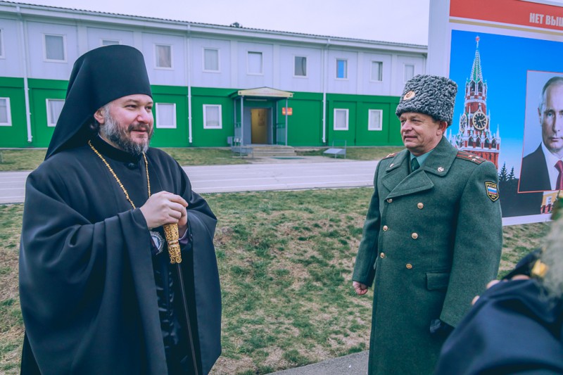 По завершении торжественного построения и парада архиерей пообщался с командованием части.