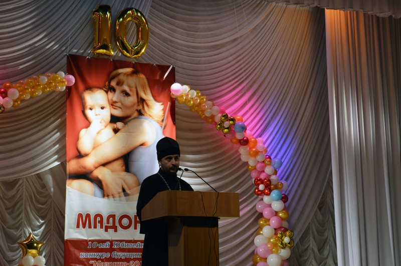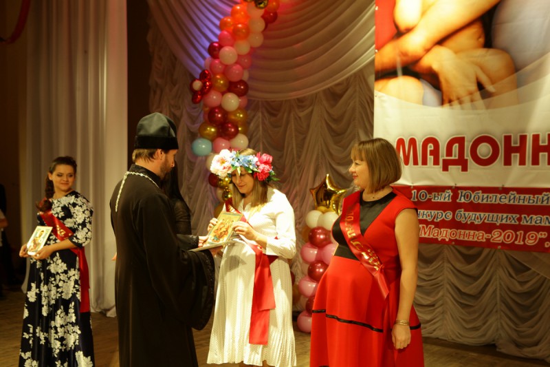 Обращаясь к участницам конкурса со словами поздравления и благопожелания благочинный благословил будущих мам и подарил каждой икону Пресвятой Богородицы.