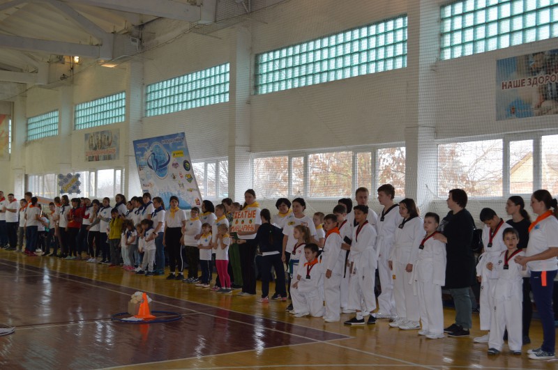Перед собравшимися выступили спортсмены секции тхэквондо Октябрьского района, которые совсем недавно сдали аттестацию в рамках проекта «Спорт без границ» и получили белые пояса (некоммерческая организация «Доброта от сердца к сердцу», руководитель К. Игнатова).