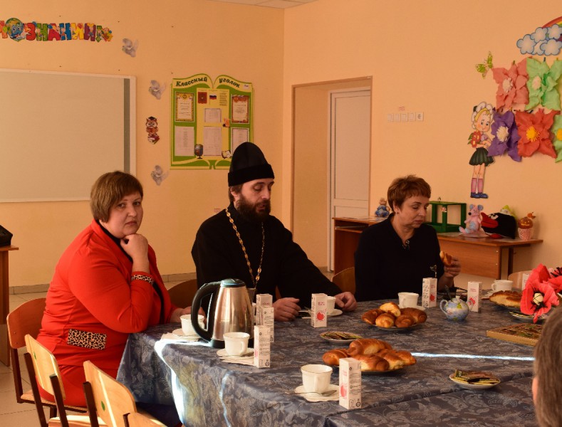 При первой встрече, за большим столом с ароматным чаем и домашними пирогами собрались бабушки учеников. Больше часа длилась встреча, в которой приняли участие председатель епархиального Отдела религиозного образования, благочинный приходов Александровск-Грушевского и Нижнедонского церковных округов протоиерей Сергий Яценко и руководитель миссионерского отдела епархии иерей Иоанн Трофимов. Старшее поколение сельчан делилось своими радостями и трудностями, задавали актуальные вопросы, касающиеся повседневной жизни.
