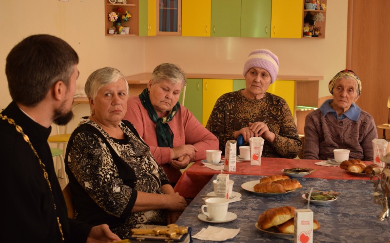 При первой встрече, за большим столом с ароматным чаем и домашними пирогами собрались бабушки учеников. Больше часа длилась встреча, в которой приняли участие председатель епархиального Отдела религиозного образования, благочинный приходов Александровск-Грушевского и Нижнедонского церковных округов протоиерей Сергий Яценко и руководитель миссионерского отдела епархии иерей Иоанн Трофимов. Старшее поколение сельчан делилось своими радостями и трудностями, задавали актуальные вопросы, касающиеся повседневной жизни.