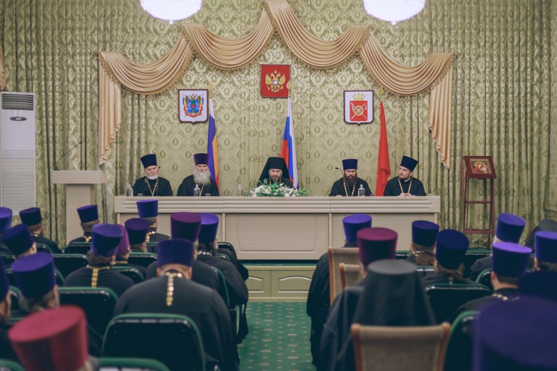 В районном Дворце культуры пос. Каменоломни Октябрьского района Нижнедонского благочиния состоялось годовое собрание духовенства Шахтинской епархии.