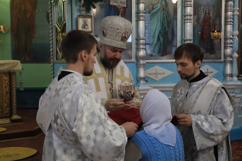 Совершив причащение, Преосвященнейший владыка преподал прихожанам архипастырское благословение.