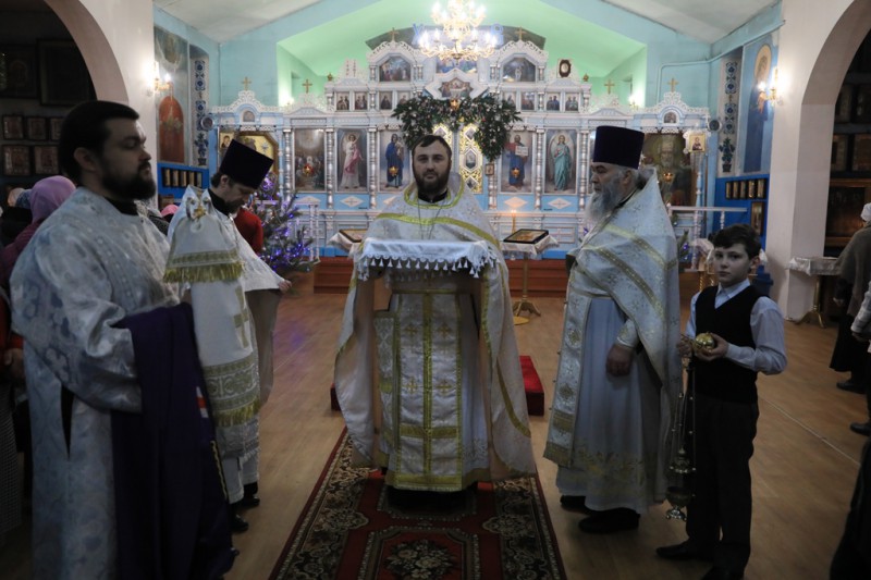 Его Преосвященству сослужили благочинный приходов Нижнедонского церковного округа протоиерей Сергий Яценко, настоятель храма святителя Алексия Московского ст. Бессергеневской протоиерей Андрей Поздняков, клирик храма Архистратига Михаила иерей Алексий Чумак, настоятель храма великомученика Георгия Победоносца иерей Сергий Липень и иеродиакон Флавиан (Васильев).