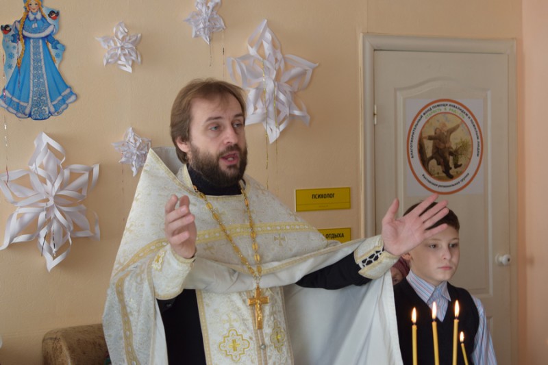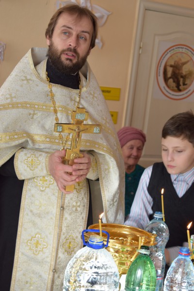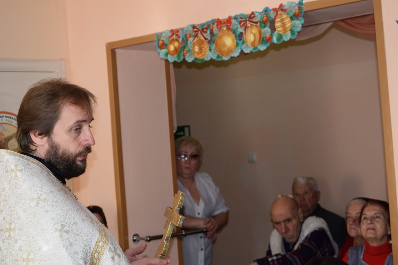 По сложившейся доброй традиции, в день Крещения Господня в центре социального обслуживания граждан пожилого возраста и инвалидов Октябрьского района п. Каменоломни благочинный приходов Нижнедонского округа протоиерей Сергий Яценко совершил чин великого освящения воды и окропил всех присутствующих святой водой.
