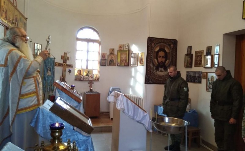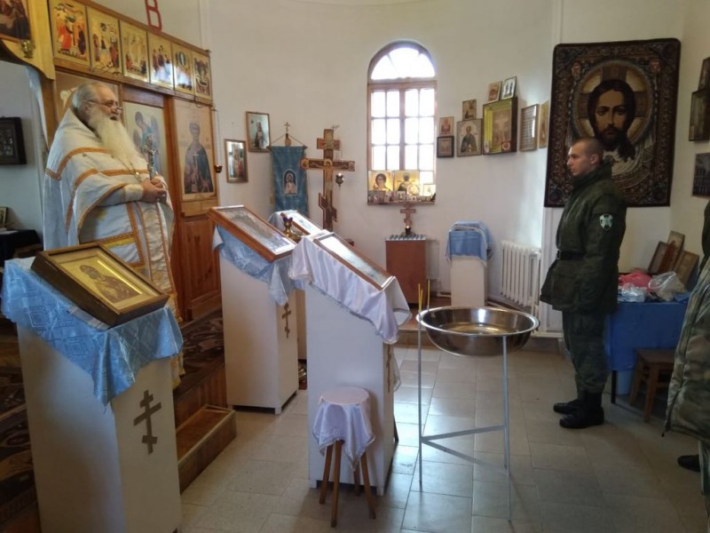 За богослужением молились военнослужащие 10 учебного центра войск национальной гвардии РФ.