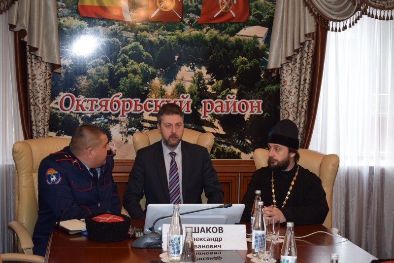 От Октябрьского района в мероприятии приняли участие Заместитель главы Администрации Октябрьского района Ушаков Александр Иванович, атаман Нижнедонского Юрта, Глава Администрации Бессергеневского сельского поселения Гудков Анатолий Михайлович, духовник Нижнедонского казачьего Юрта, благочинный приходов Нижнедонского округа протоиерей Сергий Яценко, атаманы и казаки Юрта.