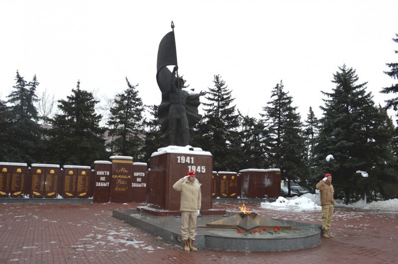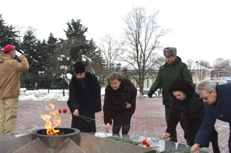 Церемония возложения цветов прошла на площади 50-летия Победы в п.Каменоломни в честь 77-ой годовщины освобождения Октябрьского района от немецко-фашистских захватчиков в годы Великой Отечественной войны.