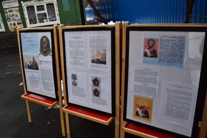По благословению благочинного приходов Нижнедонского округа протоиерея Сергия Яценко, в рамках просветительского проекта «И пусть поколения знают» в храме Архангела Михаила п. Каменоломни Октябрьского района была организована выставка «Непобедимый, праведный, святой». Она была посвящена святому праведному войну Федору Ушакову.