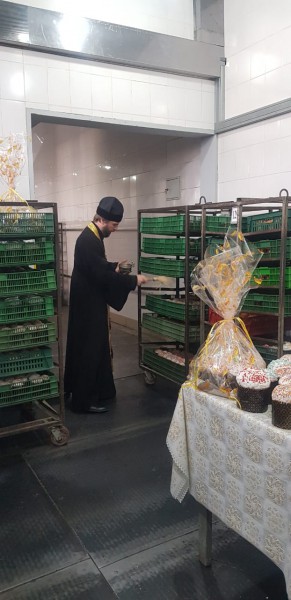 По благословению епископа Шахтинского и Миллеровского Симона, благочинный приходов Александровск-Грушевского и Нижнедонского округов протоиерей Сергий Яценко,совершил освящение пасхальных куличей на производственном комплексе по производству пищевых продуктов "Кундрат".