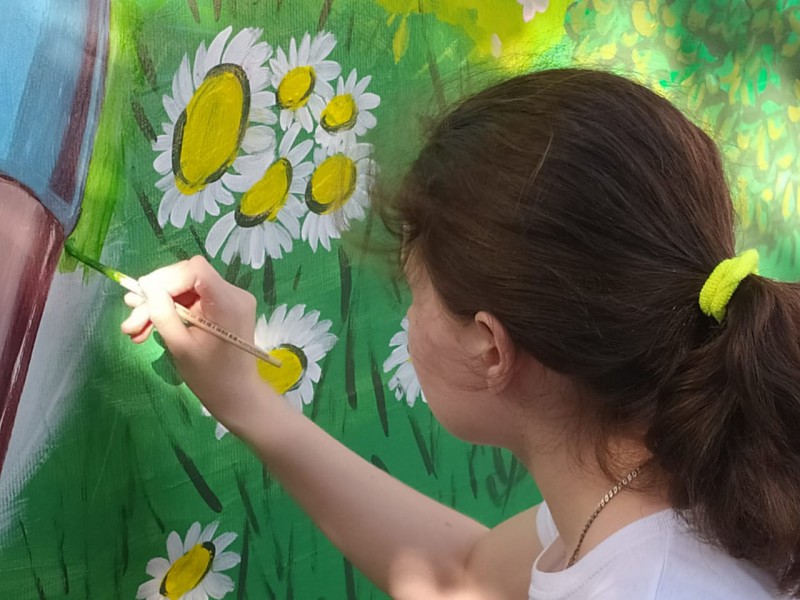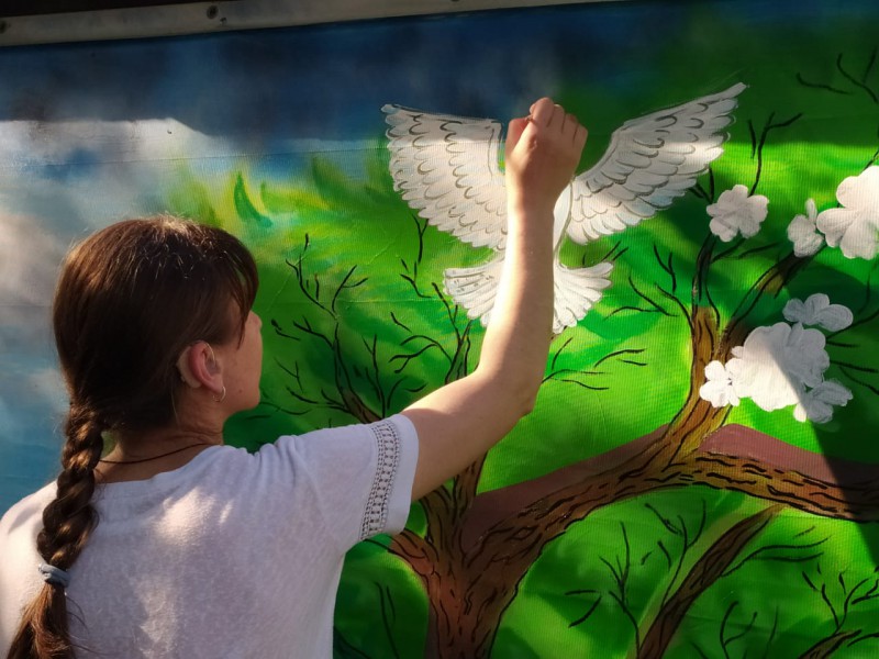Роспись стены граффити-художниками – часть участия представителей Октябрьского района во Всероссийском фестивале граффити, приуроченном ко Дню России.
