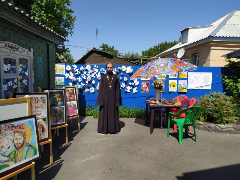 На территории храма Архистратига Михаила п.Каменоломни Нижнедонского благочиния, к празднику Семьи, Любви и Верности, Святых Петра и Февронии Муромских были оформлены тематические зоны.