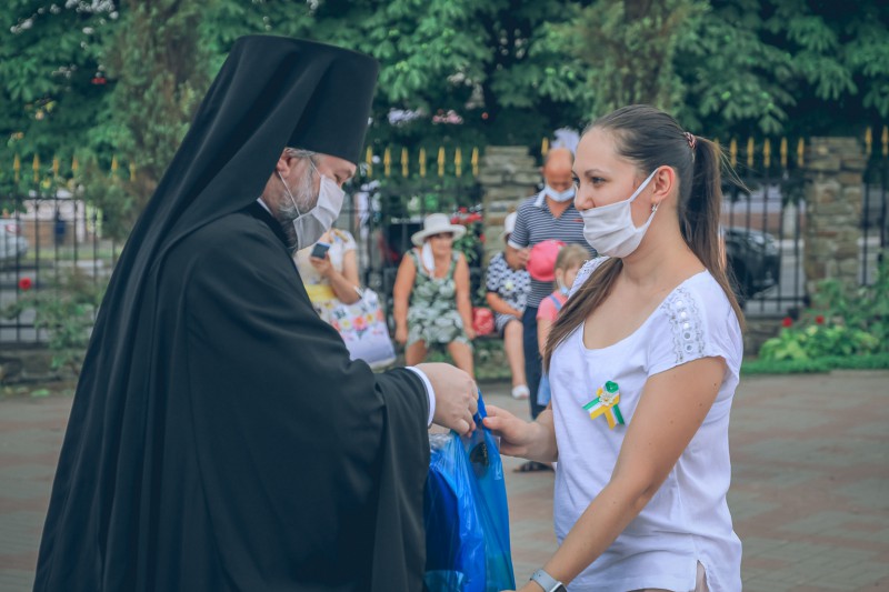 Кроме подарков всем участникам мероприятия были розданы символы Дня семьи, любви и верности – ромашки, сделанные к данному событию волонтерским отрядом "Мы рядом" Октябрьского района, под руководством Натальи Кулешовой и добровольцами Нижнедонского благочиния Октябрьского района. Три цвета ленты, с изображением ромашки, означают: зеленый-надежда и вера, белый - мир и достоинство, желтый - терпение.