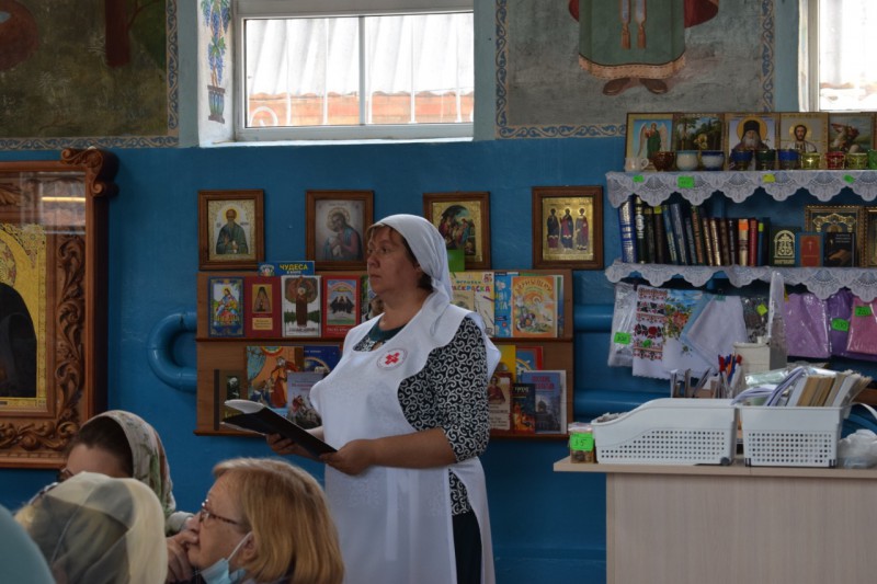 На территории прихода при поддержке районного краеведческого музея была организованна выставка «Дорогами Победы», посвященная 75-летию окончания Великой Отечественной войны. Сестры милосердия провели для участников экскурсию по стендам выставки.