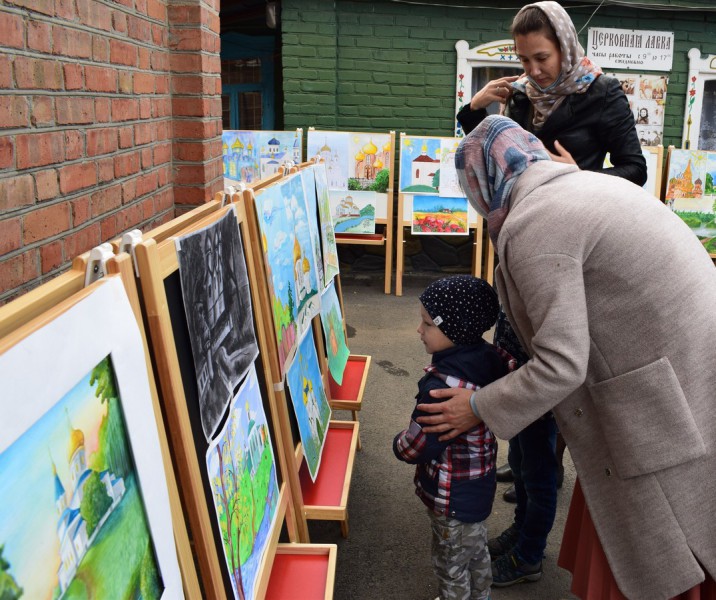 Сестры Марфо-Мариинского Сестричества, молодежный актив православного семейного клуба «Верность», педагоги и учащиеся церковно-приходской воскресной школы «Благовест» для жителей района оформили выставку, подготовили рассказ-экскурсию о храмах Октябрьского района.