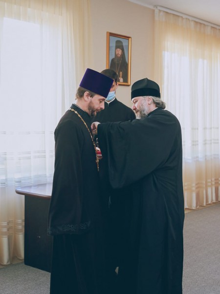 По благословению Святейшего Патриарха Московского и всея Руси Кирилла, медаль вручил епископ Шахтинский и Миллеровский Симон.