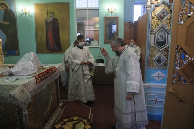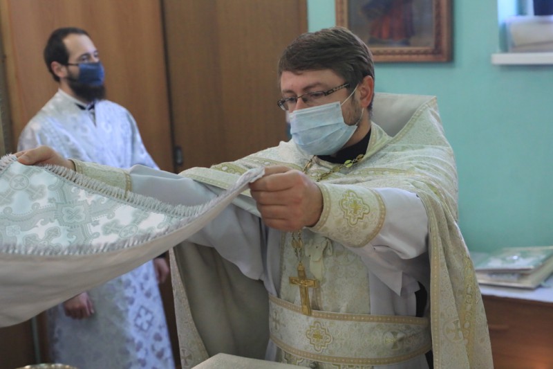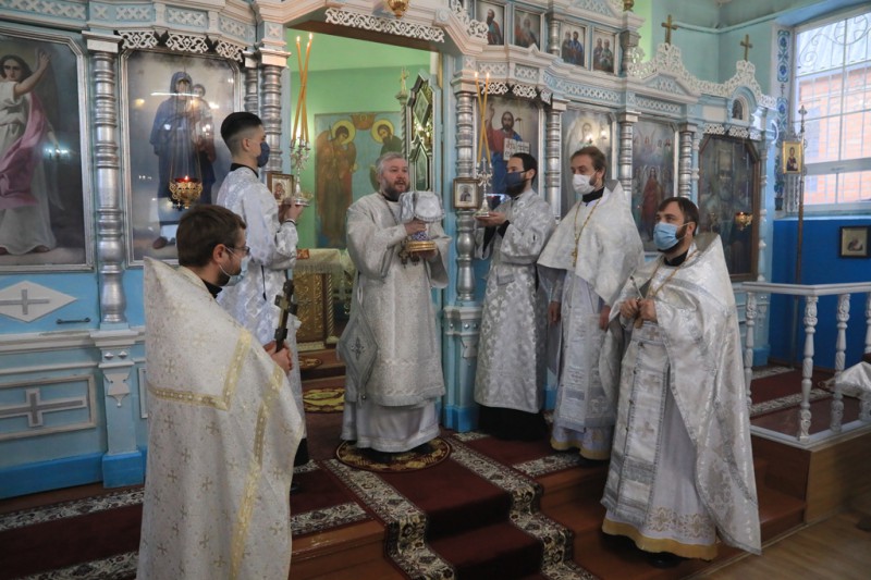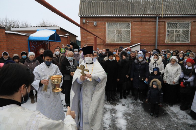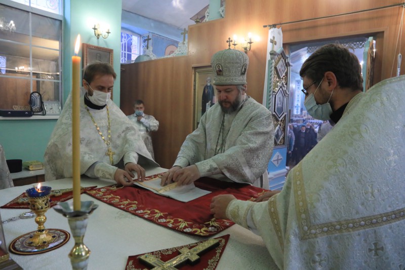 Его Преосвященству сослужили благочинный приходов Нижнедонского церковного округа, настоятель храма протоиерей Сергий Яценко; клирик храма Архистратига Михаила иерей Виталий Крендясов, настоятель храма великомученика Георгия Победоносца пос. Новозарянский иерей Сергий Липень, диакон Даниил Зырянов и диакон Трофим Осяк.