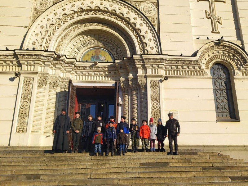 По благословению благочинного приходов Нижнедонского округа протоиерея Сергия Яценко, с целью духовно-нравственного и гражданско - патриотического воспитания юных казачат военно - патриотического клуба " Сокол", заместителем атамана Юртового казачьего общества "Нижнедонской Юрт" Спепаном Порядиным, детям была организована поездку в г. Новочеркасск с посещением Патриаршего Вознесенского собора.