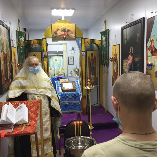 Иеромонах Николай (Наметышев), помощник командира 150-мотострелковой дивизии по работе с верующими военнослужащими в храме воинской части 22179 провел огласительную беседу и совершил таинство Крещения над военнослужащим нового пополнения разведывательной роты.