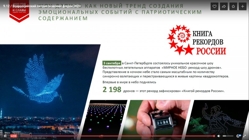 С 9 по 11 декабря 2020 года в Музее Победы состоялся Всероссийский патриотический форум, на котором представители органов государственной власти, общественных организаций, научного сообщества обсудили актуальные вопросы формирования патриотического мировоззрения в современном российском обществе. Форум прошел в онлайн формате. В нем приняли участие более 3 тысяч человек из 85 регионов.