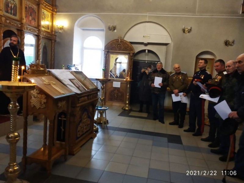 В преддверии праздника День защитника Отечества в храме в честь Донской иконы Божьей Матери г. Новошахтинска состоялась традиционная встреча казаков станицы Мало-Несветаевская Черкасского округа Международного союза общественных объединений «Всевеликое войско Донское».