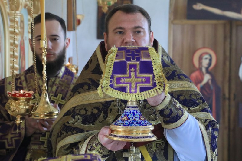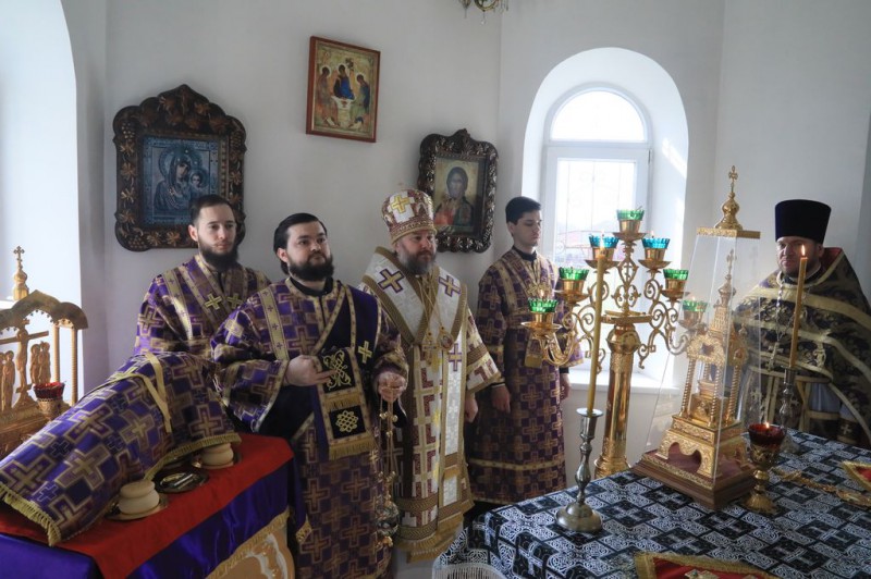 После Божественной литургии архиерей, духовенство и прихожане совершили поклонение кресту Господню.