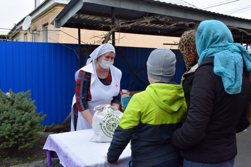 Благочинный приходов Нижнедонского округа протоиерей Сергий Яценко, вместе с приходскими добровольцами, сестрами Марфо-Мариинского Сестричества, волонтерами отряда «Мы рядом» фонда «Содействие» Октябрьского района, членами организации «Женсовет» Каменоломненского городского поселения и казаками Нижнедонского юрта принял участие в раздаче продуктовых наборов нуждающимся семьям и одиноким людям, попавшим в трудную жизненную ситуацию.