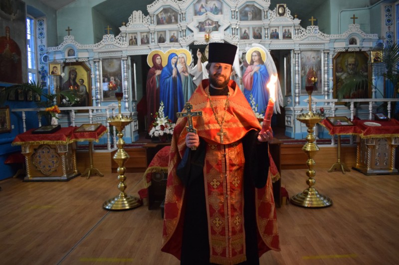 По благословению епископа Шахтинского и Миллеровского Симона, благочинный приходов Нижнедонского округа протоиерей Сергий Яценко в день Светлого Христова Воскресения - Пасхи Господней, доставил Священный огонь в храм Архангела Михаила пос. Каменоломни, где его торжественно встречали местные жители по сложившейся традиции с живыми цветами в руках.