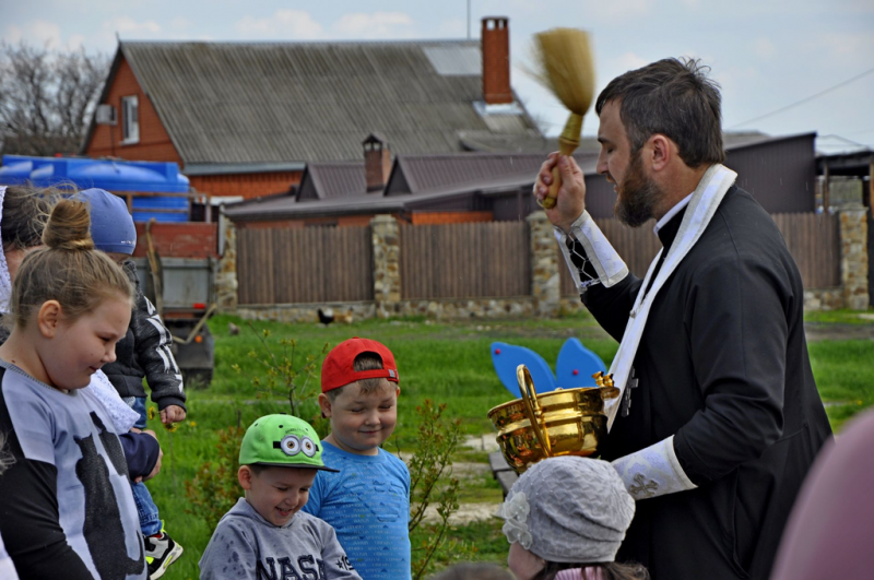 Иерей Сергий Липень поздравил собравшихся с Светлым Христовым Воскресением и совершил чин освящения.