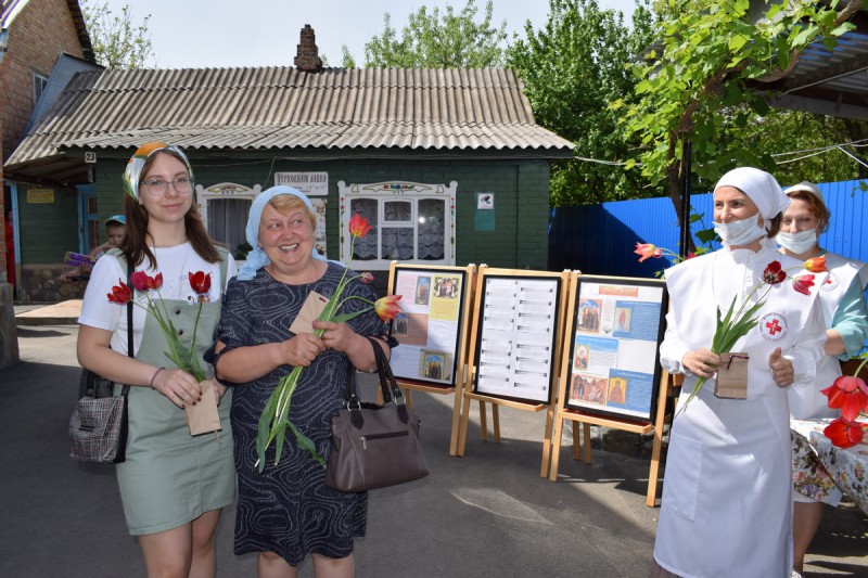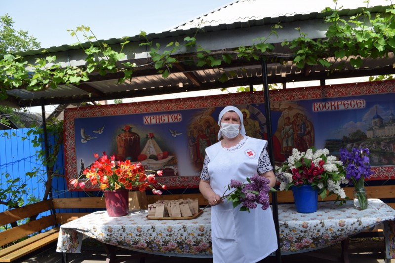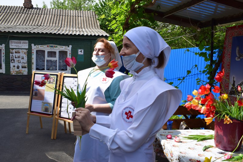 В день памяти святых Жен – мироносиц, сестры милосердия Марфо–Мариинского Сестричества поздравили всех женщин - прихожанок храма Архистратига Михаила п. Каменоломни Октябрьского района с праздником, подарив каждой букет цветов и памятный подарок.