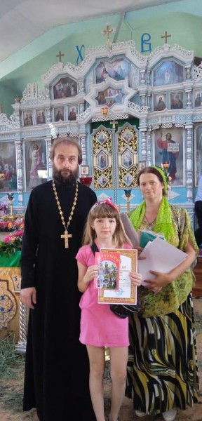 По традиции в церковно - приходской воскресной школе «Благовест" храма Архистратига Михаила п. Каменоломни Октябрьского района, после подведения итогов учебного года в праздник Пятидесятницы настоятель храма протоиерей Сергий Яценко благословил детей на душе полезное время провождения летних каникул и наградил их Грамотами и Дипломами за активное участие в Международных, областных, епархиальных и районных конкурсах детского творчества, фестивалях и концертах.
